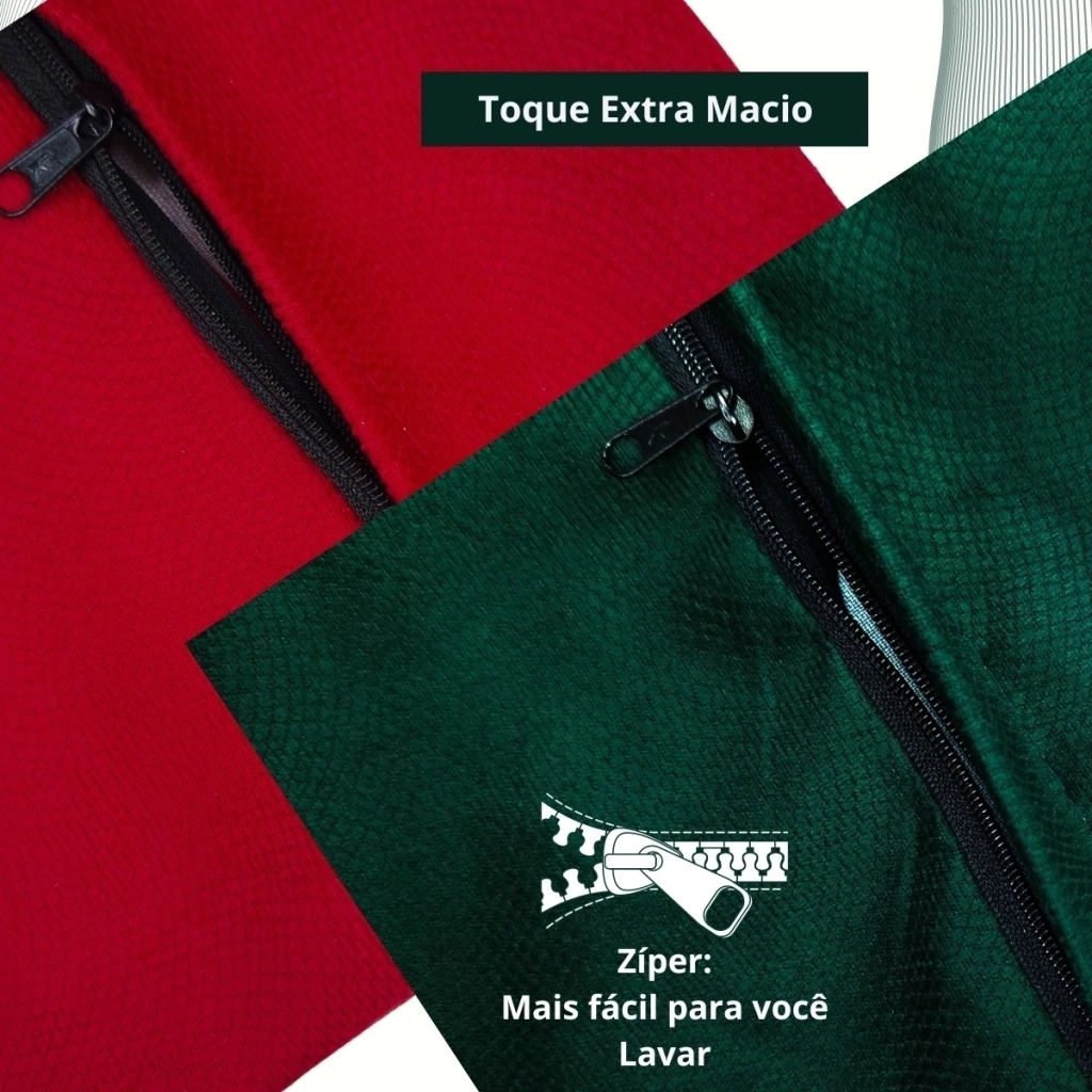 Transforme seu ambiente com o nosso exclusivo Kit de Capas de Almofadas em Suede Veludo Premium, disponível na combinação Vermelho e Verde Elegante — cores intensas que trazem sofisticação e presença para qualquer espaço.